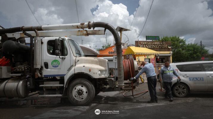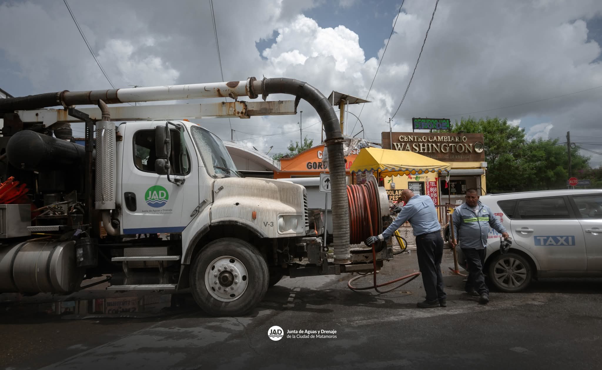 El Gobierno Municipal de Matamoros, presidido por el alcalde, Beto Granados, a través de las cuadrillas de la Junta de Aguas y Drenajes, continúa realizando labores de limpieza y desazolve en distintos puntos de la ciudad, con el apoyo del camión vactor.