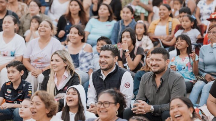 Ante la presencia de cientos de niñas, niños y sus familias, el alcalde Beto Granados, junto a la presidenta del DIF Matamoros, Ana Ariceaga de Granados, disfrutaron de una amena noche de cine al aire libre en el parque “Niños Héroes” (El Laguito).