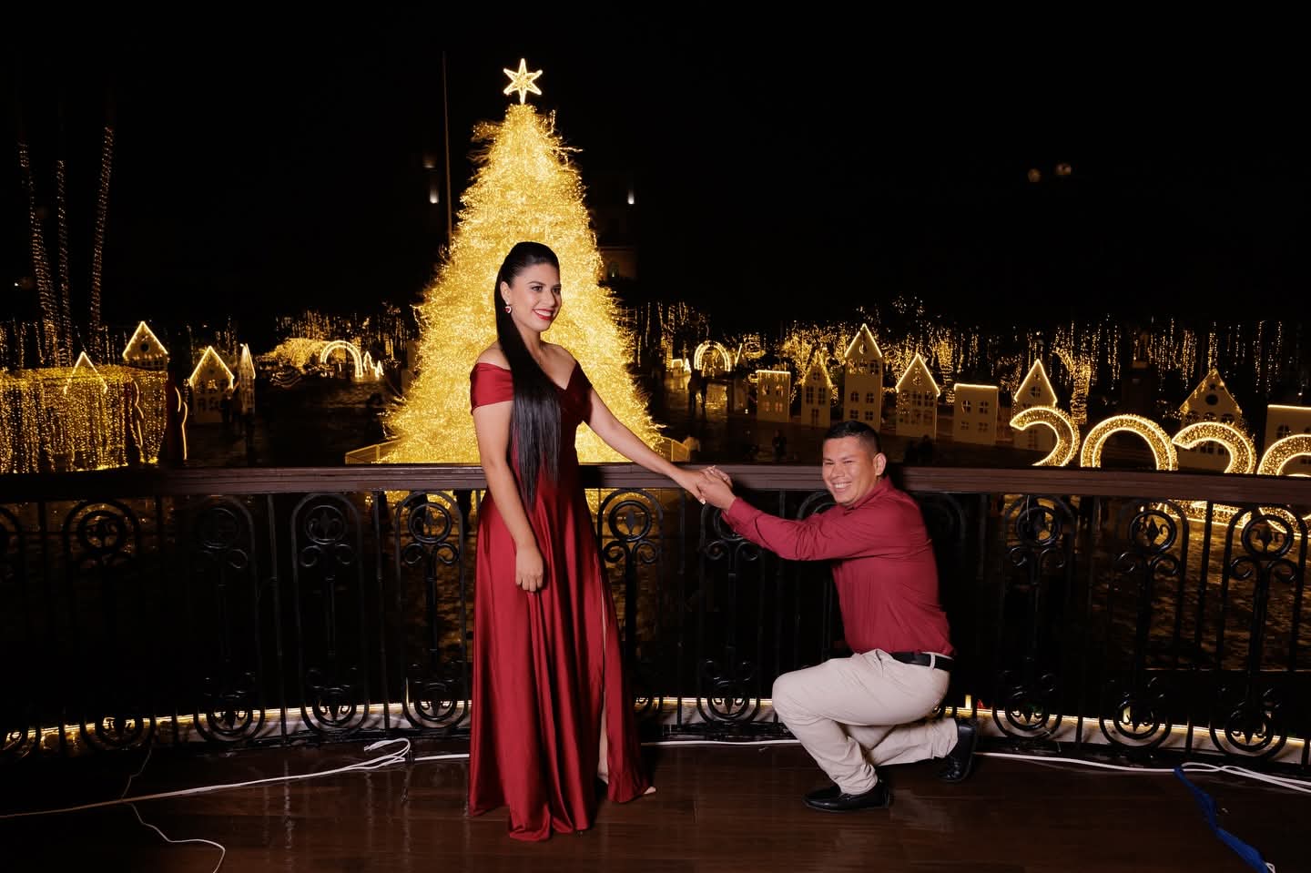 Con la plaza principal iluminada y el pino navideño como testigos, este emblemático espacio se convirtió en escenario de una historia de amor que refleja el espíritu cercano y humano de la actual administración, donde por primera vez las y los matamorenses pueden acceder de manera práctica y libre al balcón presidencial para tomarse fotografías y disfrutar de la vista de la plaza, reafirmando que Matamorense avanza.