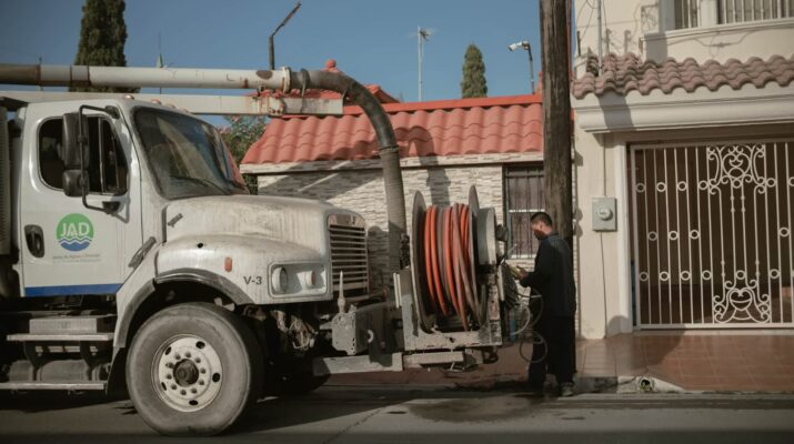 El camión vactor trabaja todos los días para reducir los niveles de agua en las líneas de drenaje y prevenir taponamientos. En esta ocasión, las cuadrillas acudieron al Fraccionamiento Victoria, donde realizaron labores de limpieza y desazolve en diversos registros del área.