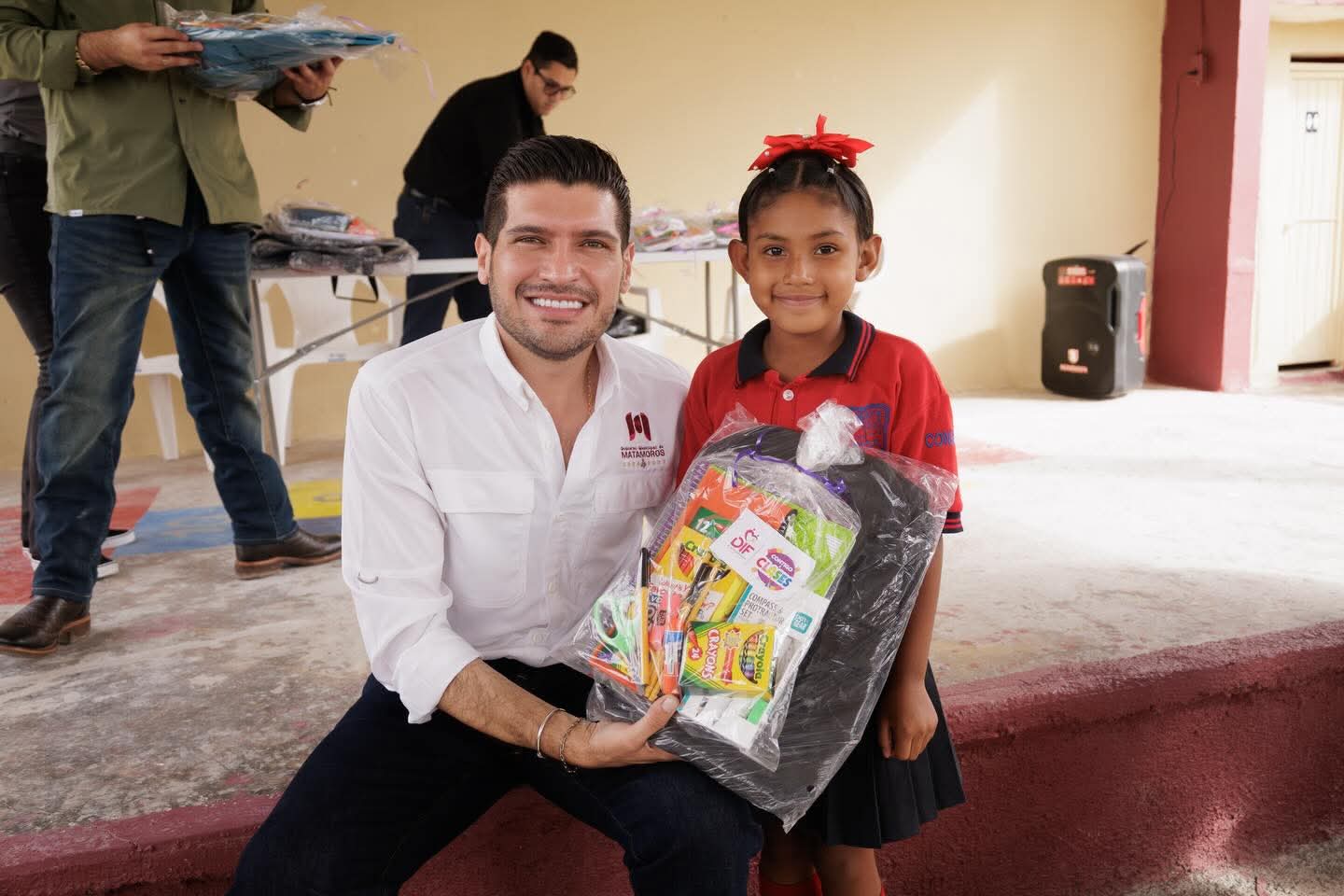 El alcalde Beto Granados encabezó la entrega de útiles escolares a las alumnas y los alumnos de la escuela Mar-Thoma, ubicada en la colonia del mismo nombre, en el Puerto El Mezquital, refrendando el compromiso del Gobierno Municipal con la educación y el bienestar de la niñez matamorense.